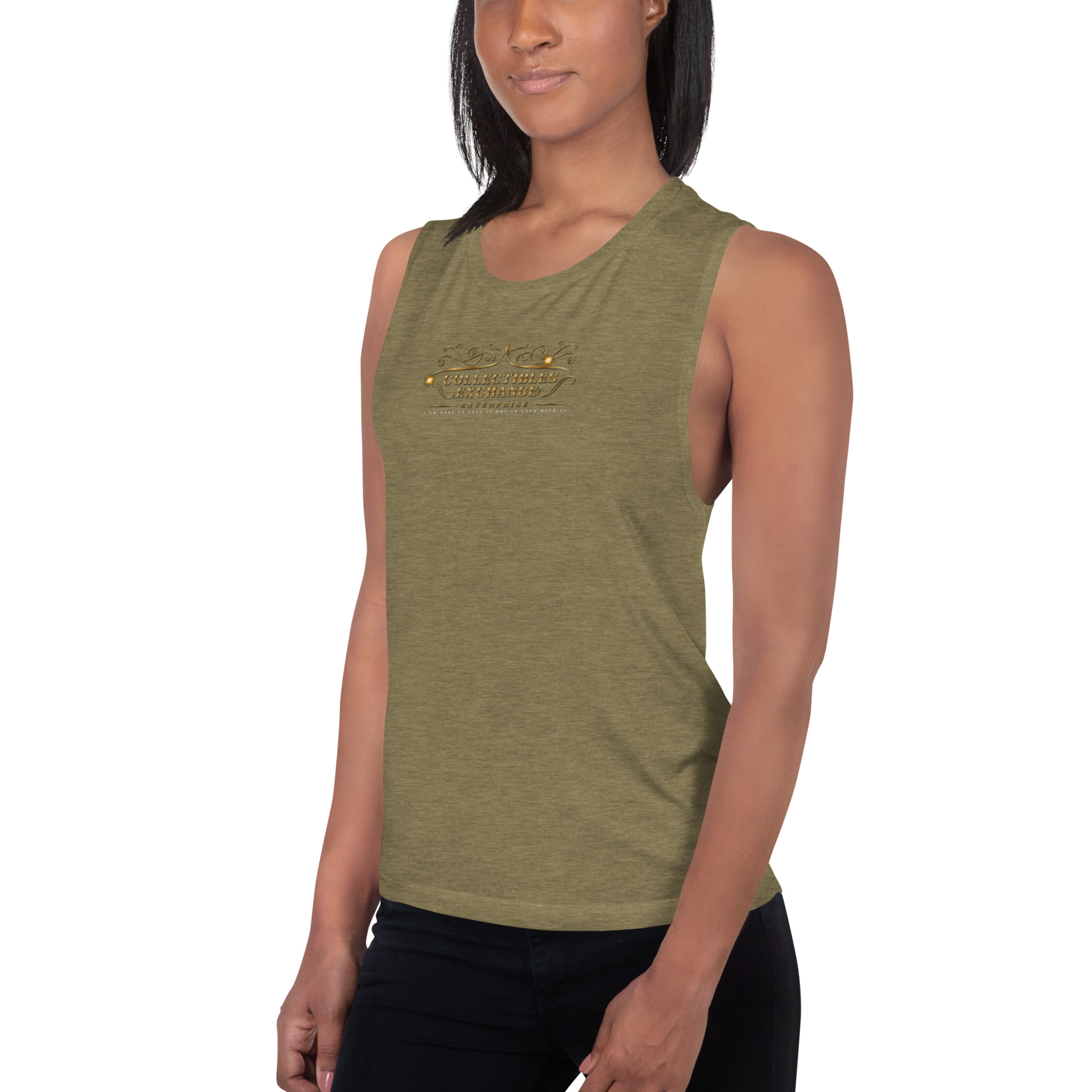 This comfortable muscle tank is soft and flowy with low cut armholes for a relaxed look.